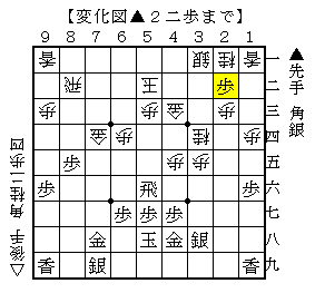 ▲2二歩に△同銀なら▲3二角△8一飛▲6三銀△同玉▲4三角成で、ソフトの評価値+9で互角。