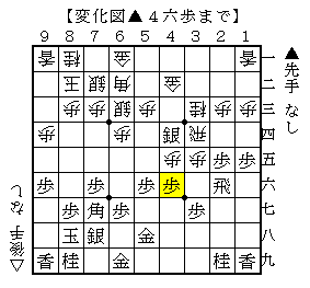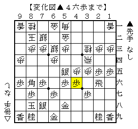 簡単に先手有利にはなりませんが、どこかで▲4六歩と突くのが急所だったようです。