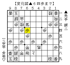 最初の局面では、6四に銀を打つか歩を打つかで全く展開が違うのが興味深いです。