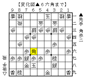 ▲6六角に△6五歩は▲5五角△9二飛▲8三角でソフトの評価値+1305で先手優勢。