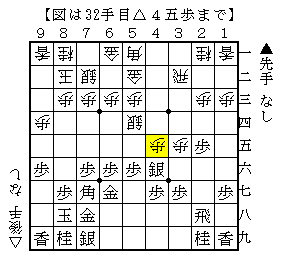△4五歩と突かないと▲6八角と引いてから▲3五銀と3筋の位を目標に動いてきますので、それを事前に受けた手です。