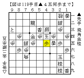 ここからは先手と後手のどちらの大駒が活用できるかという感じで、大駒が活用できた方が有利になりそうです。