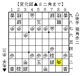 △2八角成はいいとして△8二歩では△7二銀がありました。