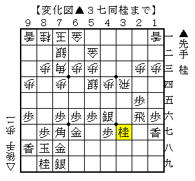 後手が△6五桂と急戦を仕掛けてきましたが、比較的珍しい形です。