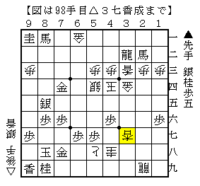 本譜は最後の▲3五歩でいい勝負のようですが、最初の局面ではソフトは▲2四歩でなく▲7七角を示していました。
