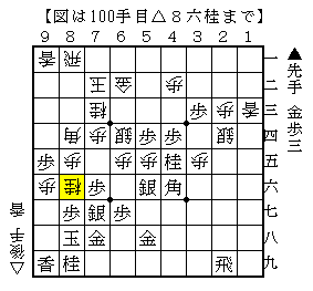 後手としても先手玉に嫌味をつけるなら△8六桂と玉頭から手を作るという感覚です。