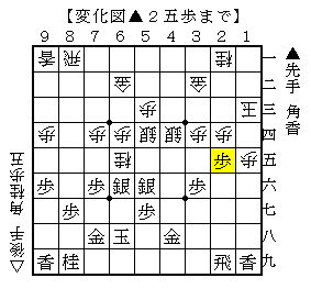 ▲2五歩△同歩▲同飛に△2四角なら▲1四歩△同玉▲2七香△2三歩▲4六角で、ソフトの評価値+561で先手有利。