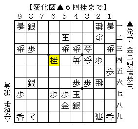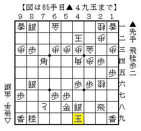 この手順の△4七歩は特に狙いがあって打った歩でなく、時間に追われて打った歩です。