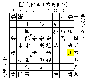 ▲1六角に△6三金なら▲3四飛△4五歩▲3二歩成△4六歩▲同銀△同銀▲2一とで、ソフトの評価値+596で先手有利。