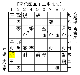 ▲1三歩と打った局面を見ると、2一の金がよく働いています。