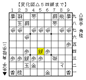 △5四銀で後手玉の守りは固くはなりませんが、上部が少し手厚くなるのと先手からのと金攻めで銀が取られる形にはなりません。