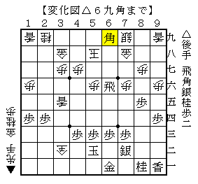 なお、△6九角に▲4九玉は△5九飛で以下▲同玉△5六飛の筋があります。