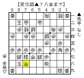 ▲7八金以下は▲4六歩と動くような展開でまだこれからの将棋ですが、どこかで▲3七桂と活用して後手の駒にアタックする感じです。