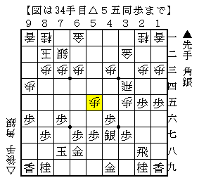 この手順は銀交換から△5五同歩と歩が伸びた展開です。
