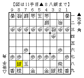 この展開は先手は▲7八玉~▲8八銀として矢倉に組むか、銀冠を目指すかという形です。