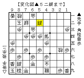 ▲5二銀に△同金なら▲7一角△7三玉▲8五桂△8四玉▲8六香で、ソフトの評価値+50000で先手勝勢。