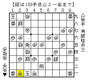 △2一金には▲2二金△同飛▲同桂成△同金▲3四桂△2一金打▲4二飛△3三金▲同桂成で、ソフトの評価値+99994で先手勝勢。