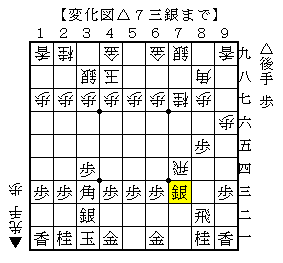 この手順は△7九銀には▲7八金で後手も次の攻めが難しく、△6八銀打と駒を繋ぎますが▲3一飛成で先手が少し指せているようです。