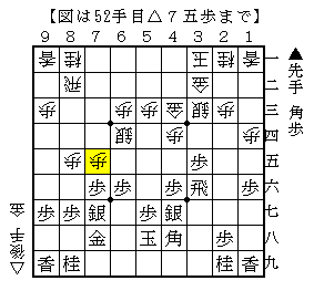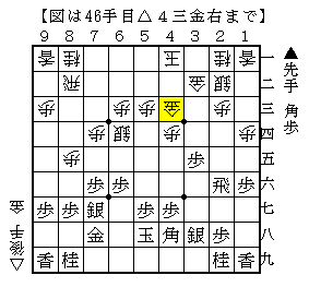 先手の指し手以上に後手の方が価値の高い手が多かったようで、特に先手は4八の角が立ち遅れているます。