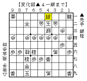 もう1つは▲4一銀に△5九飛と打つ手です。