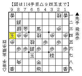 後手の守りの金と角の交換なので、先手もそんなに悪い条件ではなくいい勝負のようです。