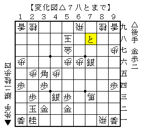 その点、本局の変化手順の飛車と角が反対側の位置ならあまりそのような心配はありません。