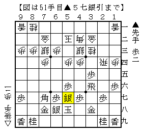 △5四歩は▲5五銀を防いだ意味や、4二の角の活用の手です。
