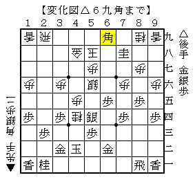 △6九角に▲4九玉なら△4六銀で、ソフトの評価値-1021で後手優勢。