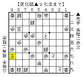 △7八龍▲同歩△5一金打とすれば手数は伸びますが、▲5二銀成△同金右▲3一飛で、ソフトの評価値+2257で先手勝勢。