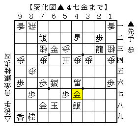 ▲6三金~▲4七金で後手玉は寄り筋だったようです。