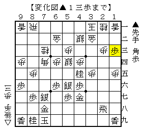 ▲1三歩で▲3三歩とすると△同桂▲同桂成△同銀で、ソフトの評価値-44で互角。