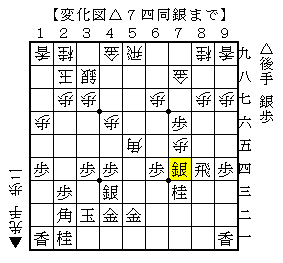 △7四同銀とすることで▲6四角と飛び出すことができたようです。