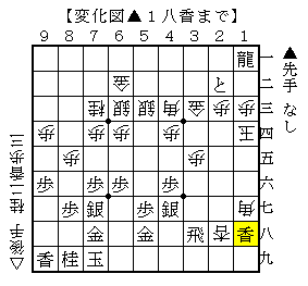 ▲1七香に△1六香としましたが、そこで▲3一龍が少し浮かびづらいです。