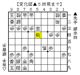 先手は飛車は渡しづらいので▲5四飛ですが、この局面が先手有利だったようです。