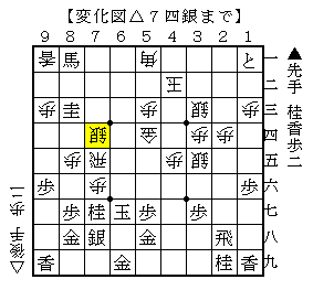 ▲4三歩では▲8三成桂がありました。