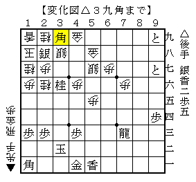 この手順は先手は▲3五飛~▲3六飛と桂馬を抜いて粘る手で、まだ手数はかかりますが後手優勢のようです。