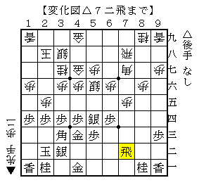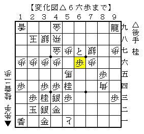 上図は、相掛かりからの進展で△6九歩成と銀を取った変化手順の局面。ソフトの評価値+2080で先手勝勢。