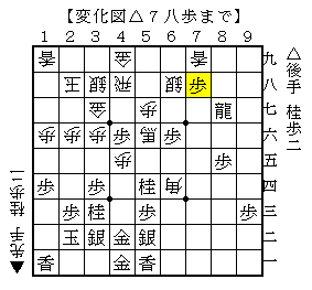 なお最初の局面図から▲4八玉に△4七歩なら▲3九玉△4八銀▲2九玉△6八と▲4九歩△2八歩▲同金で、ソフトの評価値+50000で先手勝勢。