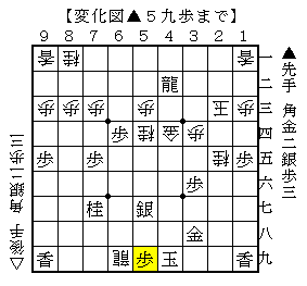 この手順は▲4八玉には△3七銀の打ち込みから△5九角と迫る手です。