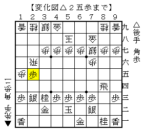 後手の横歩取りに先手が▲3六飛型を選択したのでこのようになりました。