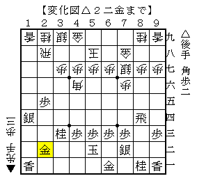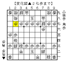 この手順は▲2七歩と2筋をあやまらせる形で、2筋の歩を交換した場所に歩を打たせました。