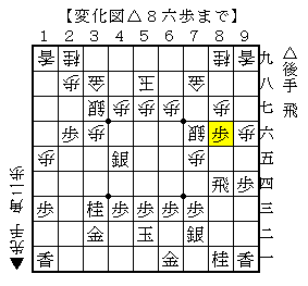 △8六歩に▲同歩△同飛▲8七金なら△7六飛▲同金△8八飛で、ソフトの評価値-1900で後手優勢。