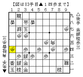 ▲1四歩△4九銀に▲1三香なら△3八銀成▲同銀△2五桂▲同歩△2六金▲4七玉△1八龍で、ソフトの評価値-776で後手有利。