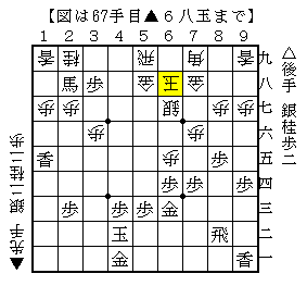 5七にいた玉が▲6八玉と引いた形です。