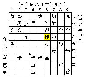△6六桂には▲5五桂が厳しいようで、次は▲6三桂成~▲5三飛成のような手があります。
