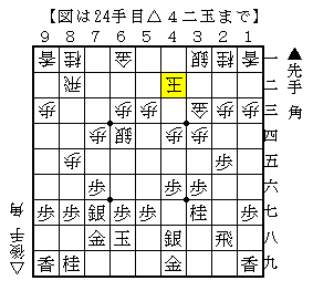 実戦は△3三同金以下▲6八玉△8四歩▲8八銀△6二銀▲4八銀△8五歩▲7七銀△7四歩▲7八金△7三銀▲3六歩△6四銀▲3七桂△4四歩▲4六歩△4二玉で、ソフトの評価値+125で互角。
