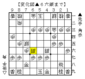 ▲6六銀に△6四銀なら▲3四歩△同金▲2四歩△同歩▲2三角△3三金▲5六角成で、ソフトの評価値+582で先手有利。
