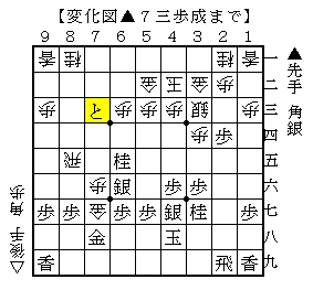 先手は7八の金は渡してもいいようで、何気に▲7三歩成は厳しいようです。
