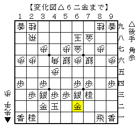 △6二金はよく出る形で互角のようですが、今後の後手の指し方が気になります。