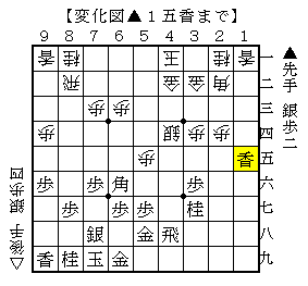 この局面は、飛車と角の交換から先に香車と桂馬を取られたのでやや先手が苦しいです。